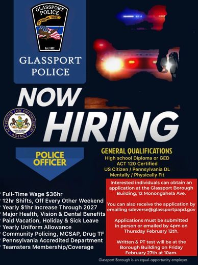 Sidewalk Safety Reminder All residential, retail, and commercial property owners are required to ensure that sidewalks and walkways adjacent to their properties are cleared within a reasonable amount of time. Property owners may be cited if this responsibility is not met. Glassport has a high volume of foot traffic, so please be courteous and do your part to keep sidewalks safe and passable. If someone slips and falls due to uncleared walkways, property owners may be held liable. When removing snow, please use caution and take breaks as needed—especially for older residents. Whenever possible, park vehicles in driveways to allow snow plows to fully clear the streets. Thank you for helping keep our borough safe.